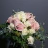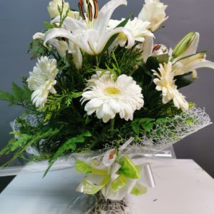 Composición a base de rosas, paniculata y verdes variados. Con opción de Rosas rojas.