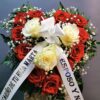 -Arreglo de flores variadas con rosas rojas y tonos acorde con la dedicatoria (135 flores)