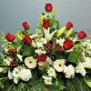 Precioso arreglo floral elaborado en tonos rojos y naranjas. Una creación de estilo clásico que aporta gran calidez y elegancia.
