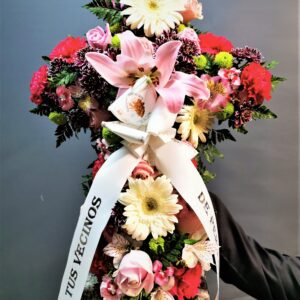 -Arreglo floral en forma de cruz con rosas blancas (36 flores aprox)